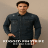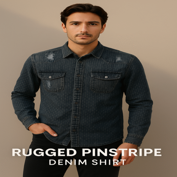 Elevate your wardrobe with the Rugged Stripe Champion Denim Shirt, crafted from premium quality denim fabric. This shirt features a subtle vertical stripe pattern that adds a modern and stylish touch, with light distressed detailing on the shoulders and pockets for a youthful, casual vibe.